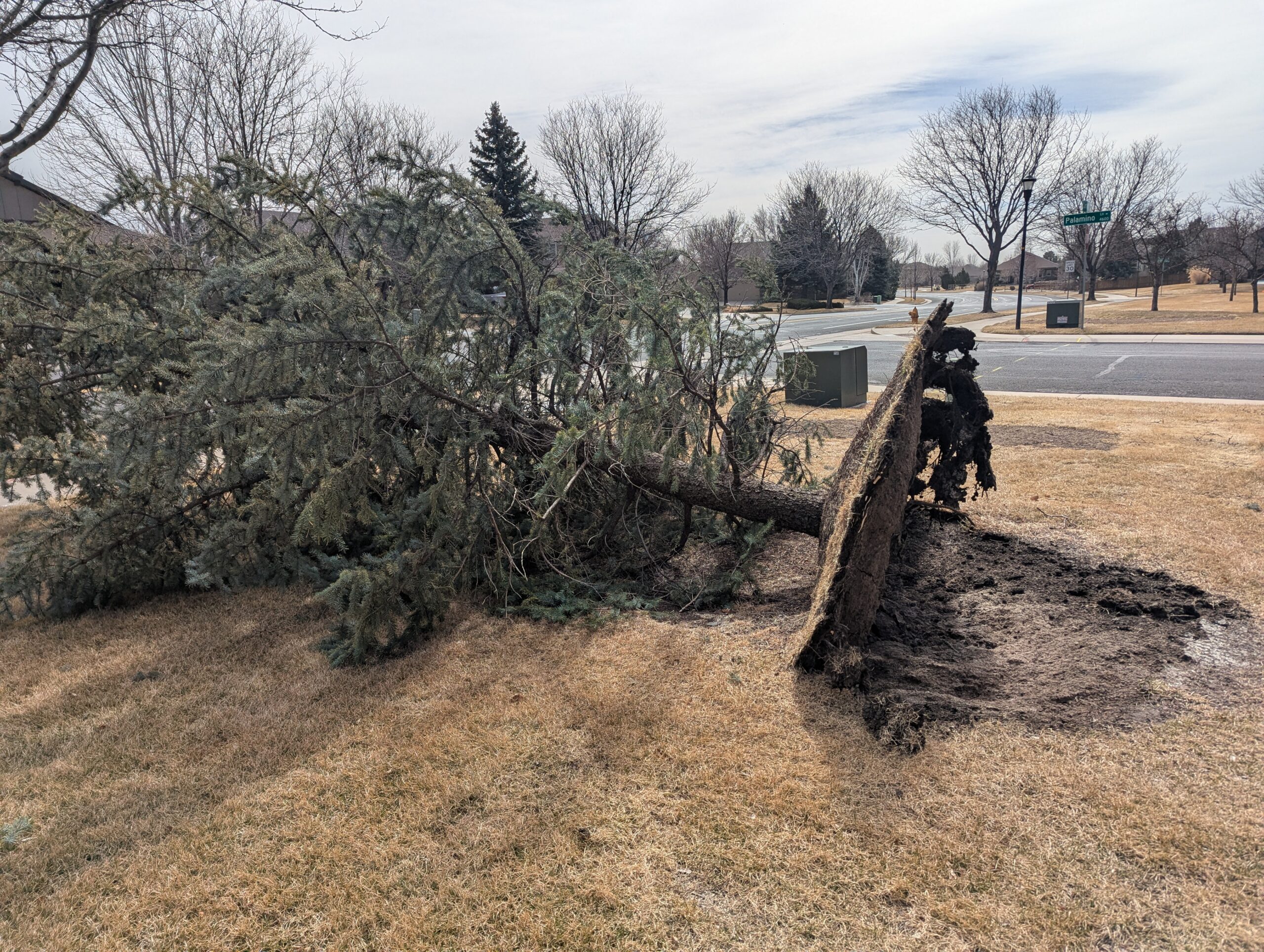 - Loss of several trees that were unfortunately uprooted. Mill Brothers will be grinding and cleaning up the stumps shortly.